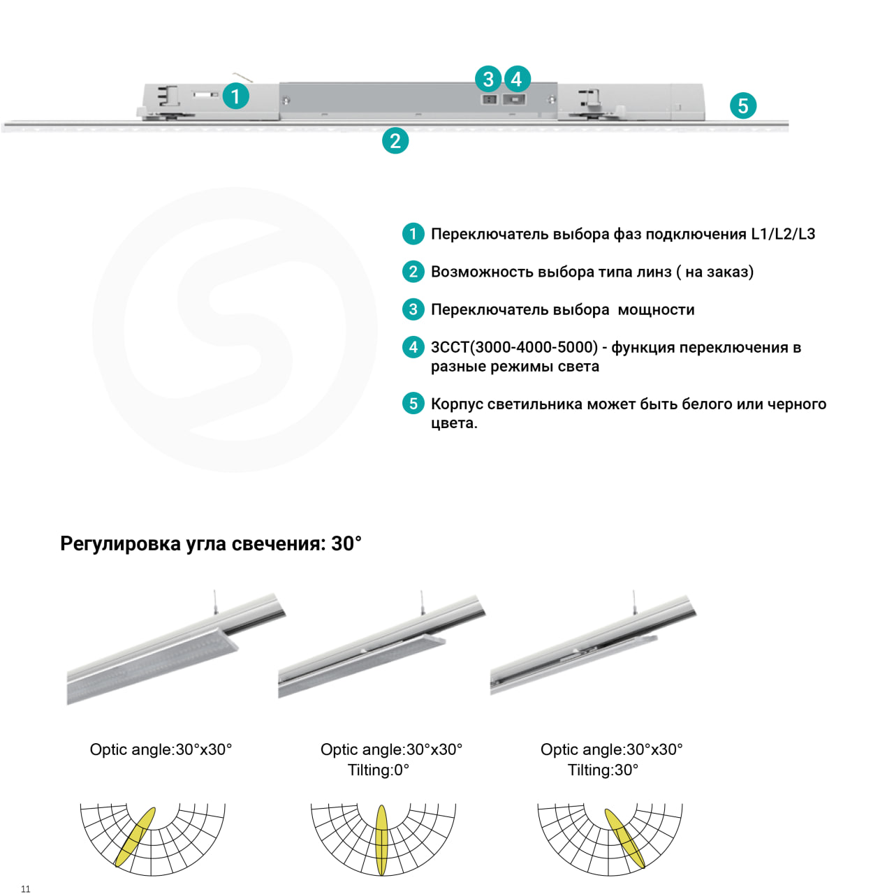 ЗCCT(3000-4000-5000)K- функция переключения в разные режимы света