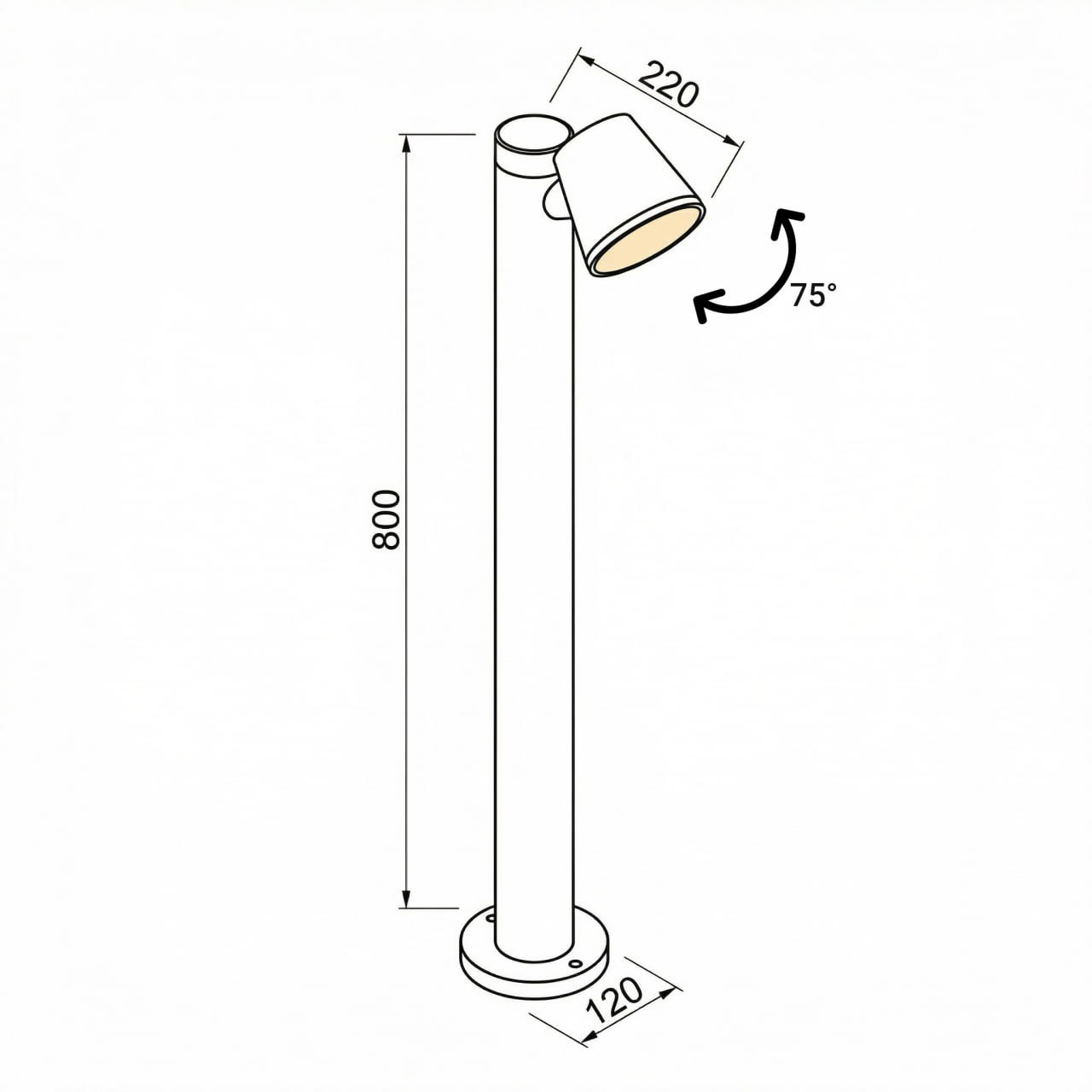 Голова светильника поворачивается вверх/вниз на 75°