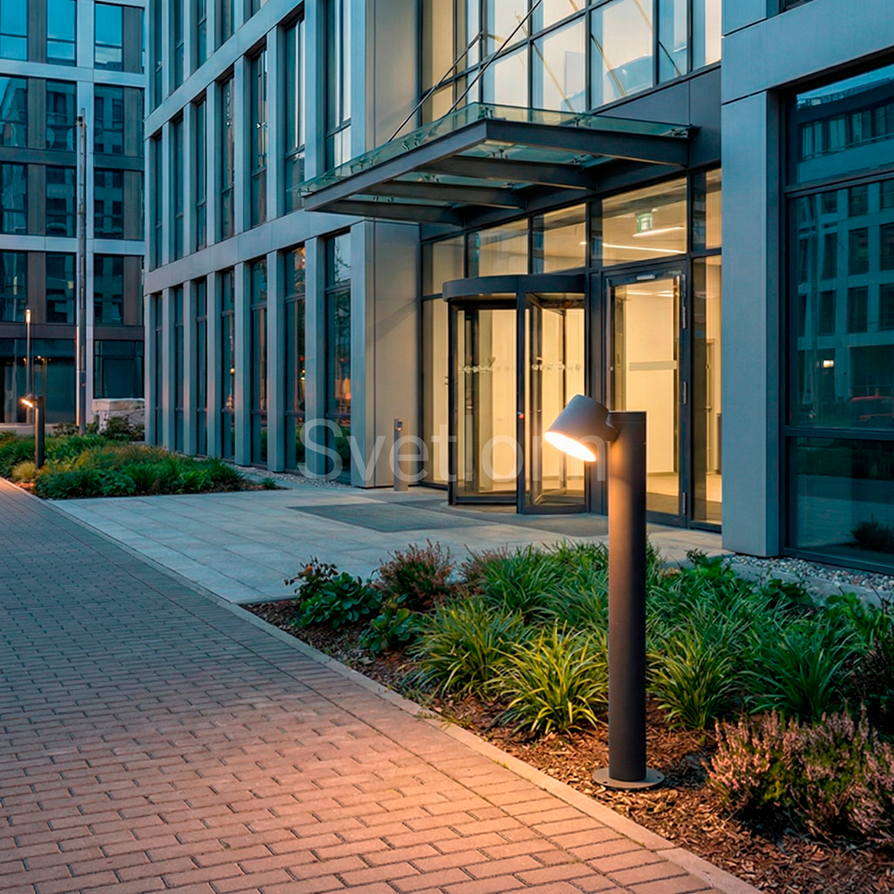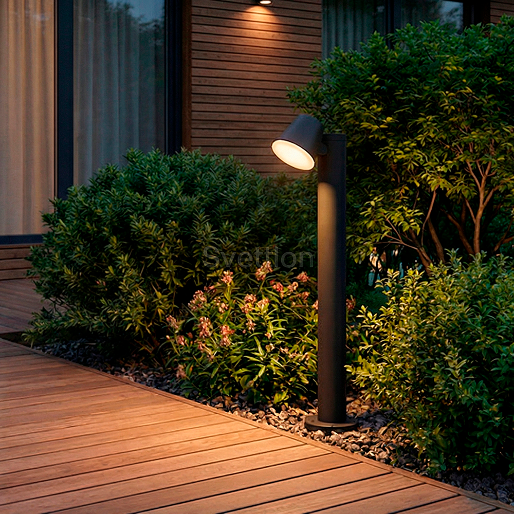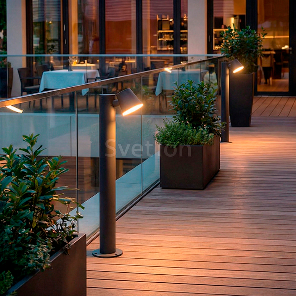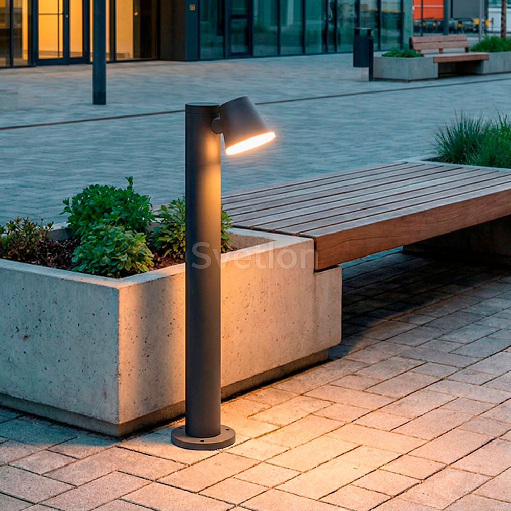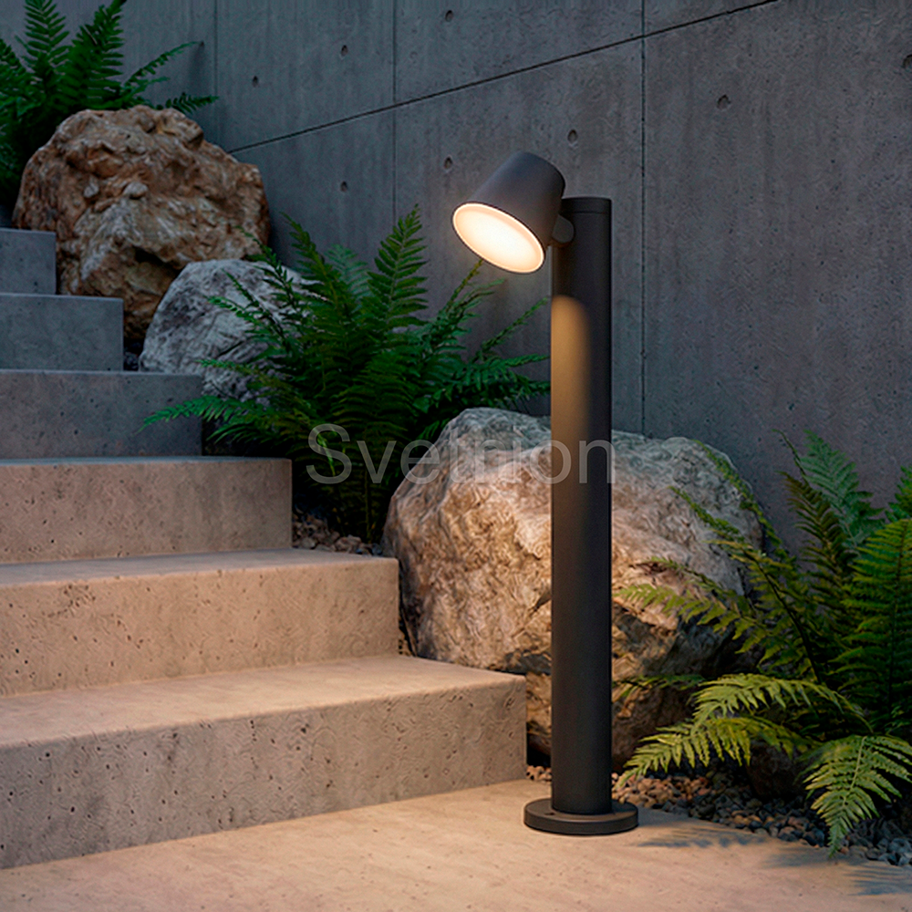 Данный светильник имеет строгие формы и идеальные пропорции, которые позволят использовать его в любых интерьерах и ландшафтах. Источником света является светодиод мощностью 12Вт. Конструкция светильника имеет возможность изменять направление света в вертикальном направлении, что позволяет регулировать мощность светового потока и его направление. Светодиод закрыт PC рассеивателем, что надежно защитит его от негативного воздействия неблагоприятных внешних факторов. Заводское покрытие обеспечивает долгий срок службы и защиту от возникновения коррозии. Светильник данной серии преобразят ваш дом и участок днем и создадут неповторимый вид в вечернее и ночное время.