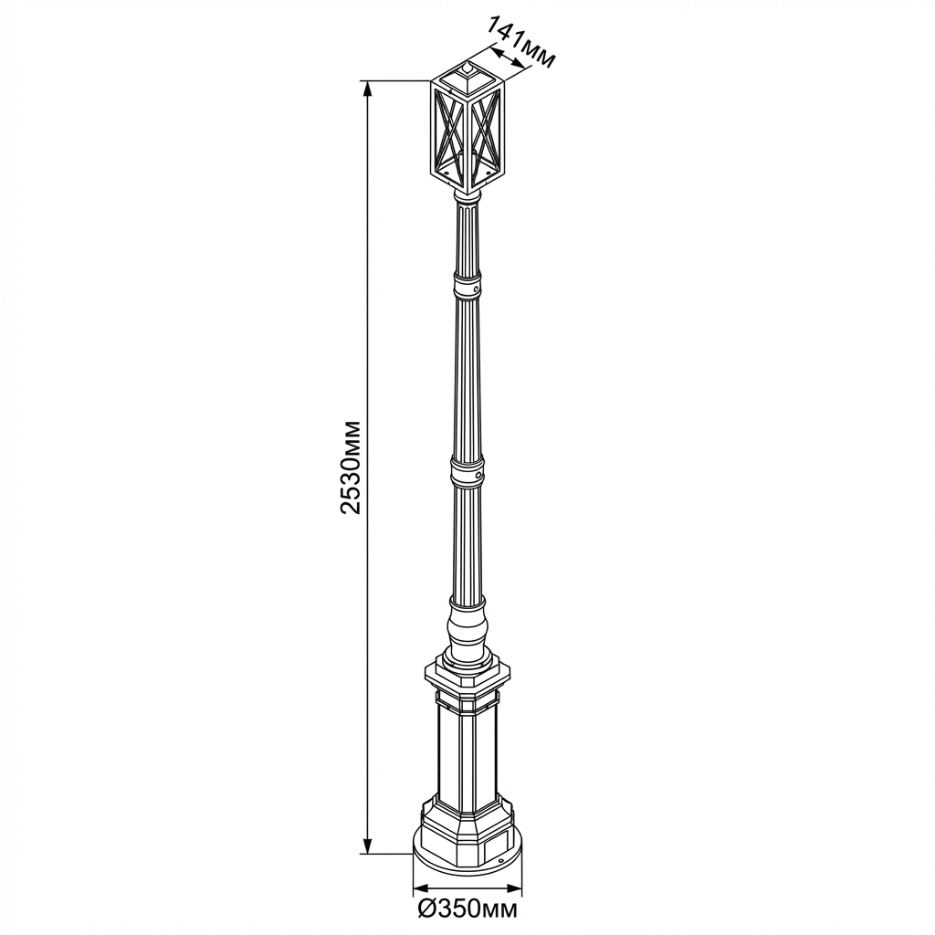 - Оригинальное квадратное основание столба светильника придает монументальность и существенно отличает от стандартных круглых оснований