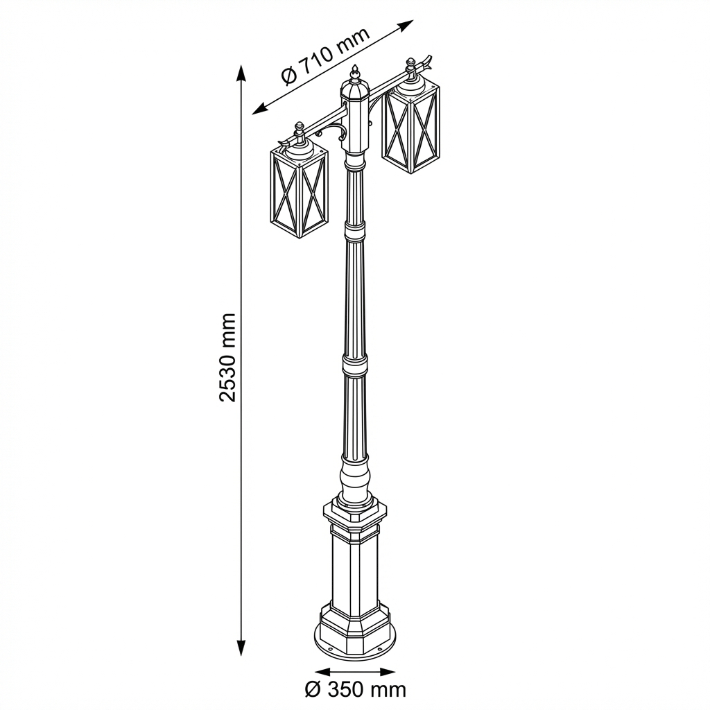 - Оригинальное квадратное основание столба светильника придает монументальность и существенно отличает от стандартных круглых оснований