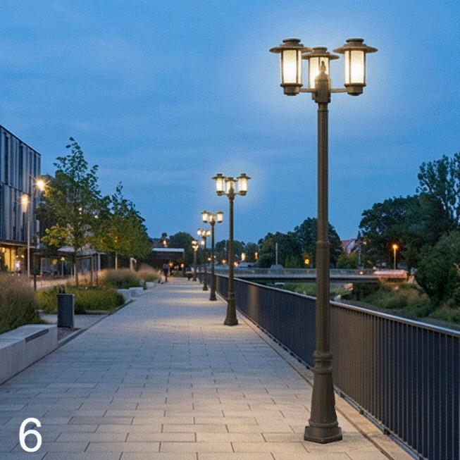 Светильник имеет 3 головы и идеально подходит для размещения на открытых участках территории с целью освещения зон отдыха, придомовой территории, парковых дорожек, аллей и т.д.