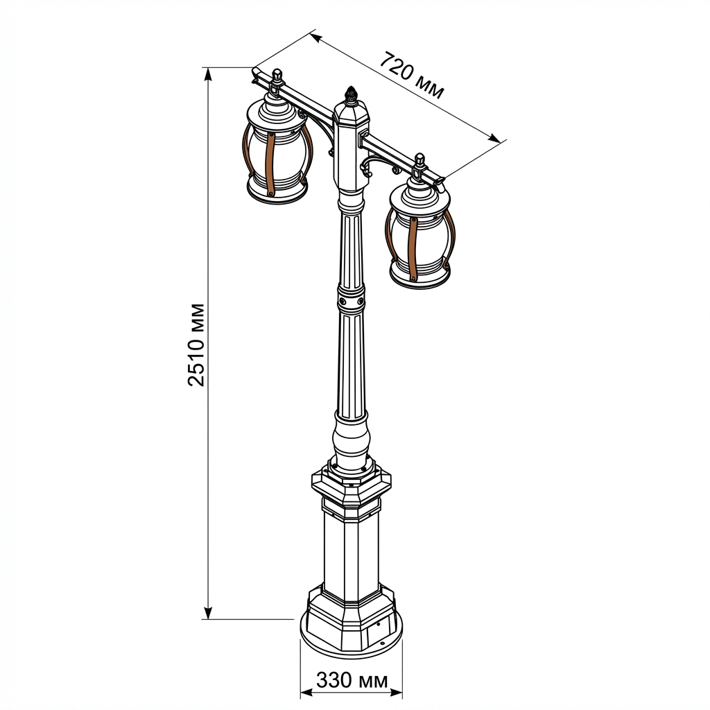 - Оригинальное квадратное основание столба светильника придает монументальность и существенно отличает от стандартных круглых оснований