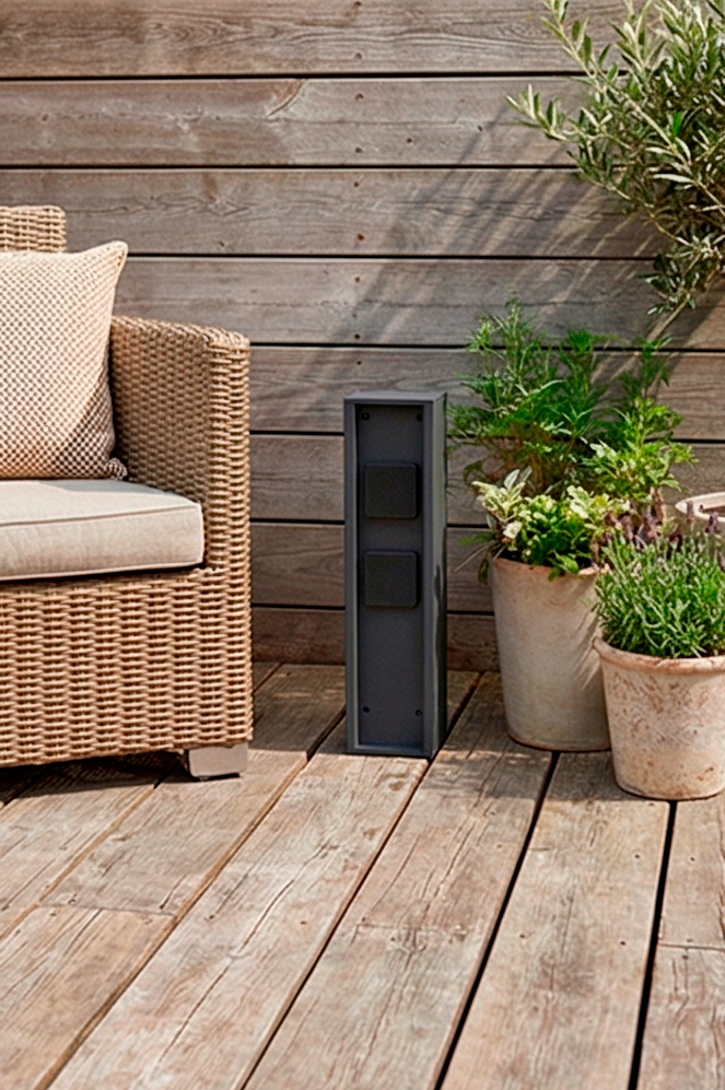 Разработка и дизайн выполнены итальянским мастером Franko Paglianini. Стильный и элегантный квадратный корпус изготовлен из алюминиевого сплава с термостатическим покрытием, что надежно защищает его от коррозии. Специальное монтажное основание позволит надежно закрепить корпус розеток на выбранном месте, а расположенная внутри влагозащищенная клеммная коробка - подключить безопасно питание.