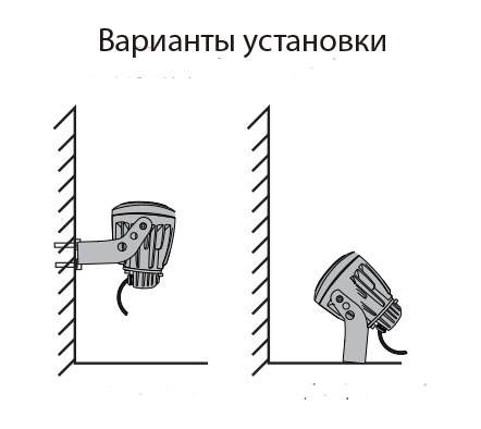 - Благодаря универсальному основанию прожектор может быть легко установлен на любую горизонтальную или вертикальную поверхности, быстро перемещен в другое место в зависимости от текущих потребностей.